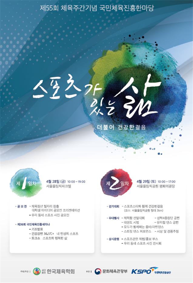 사단법인 한국체육학회에서 2017년 4월 체육주간을 맞이하여 ‘제55회 체육주간기념 국민체육진흥한마당’을 개최 합니다.