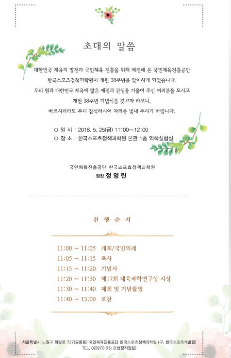 (타 기관) 국민체육진흥공단 한국스포츠정책과학원 개원기념식 안내